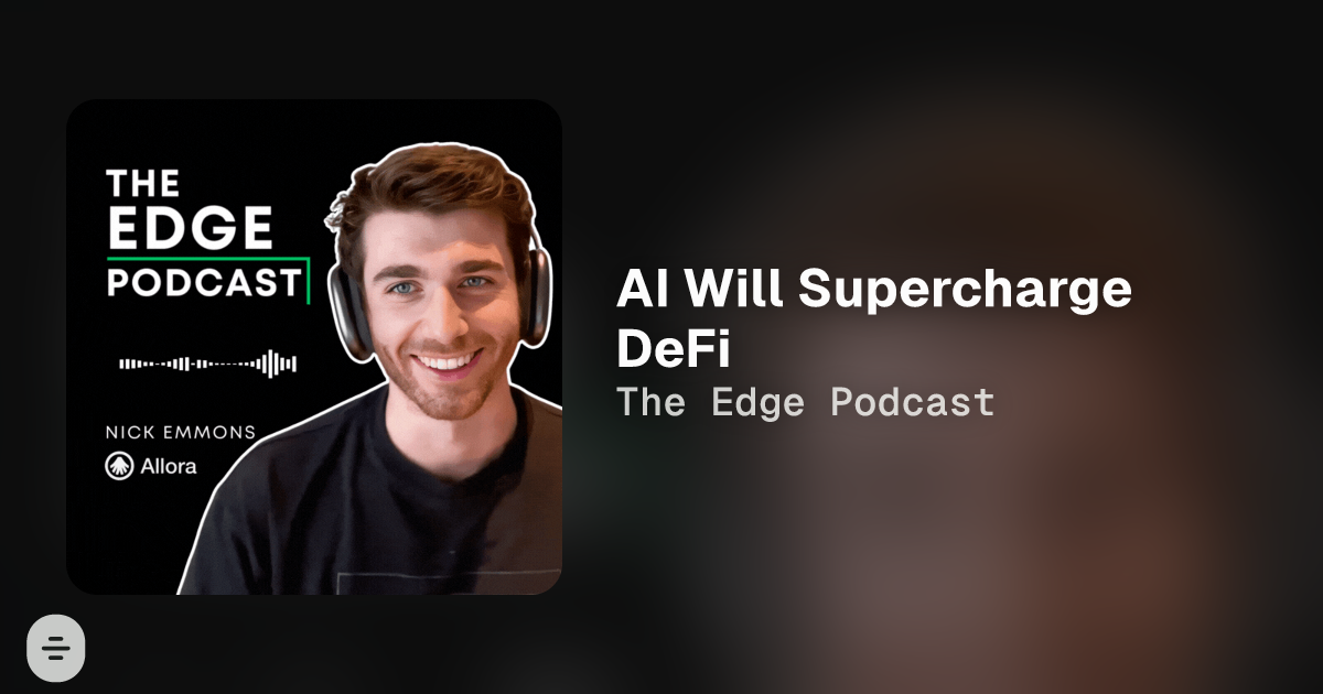 In the newest episode of The Edge Podcast, we interview the CoFounder of Allora Labs, Nick Emmons, about the transformative potential of decentralized AI to supercharge DeFi, including how it differs from traditional, centralized AI systems and how Allora is reshaping the way intelligence is shared, accessed, and monetized. If you’ve been struggling to understanding why so many builders are working feverishly to figure out how DeFi can integrate AI and how AI can leverage DeFi, this is the pod for you, our best yet on the enormous impact yet to come from marrying crypto and AI technologies. Don't miss it!