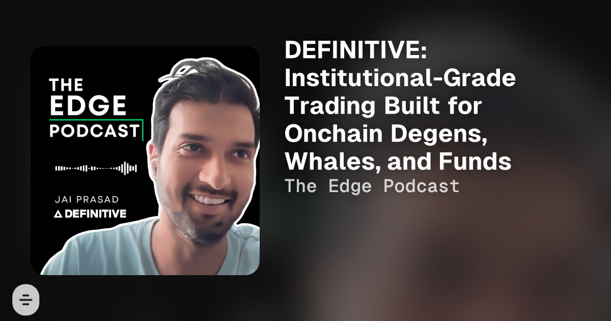 In a new episode of The Edge Podcast, we review our favorite app to trade onchain, called DEFINITIVE. It is an institutional-grade trading platform built for DeFi by the same team who built products at Coinbase for customers like Michael Saylor, BlackRock, and Tesla. Combining their proprietary off-chain engine and the power of non-custodial smart contracts, DEFINITIVE gives us unparalleled trade execution, advanced order types onchain, and gasless trading on a chain-abstracted app. We discuss why DEFINITIVE is being used by the biggest crypto institutional traders, hedge funds, whales, and everyday DeFi power-users like ourselves.