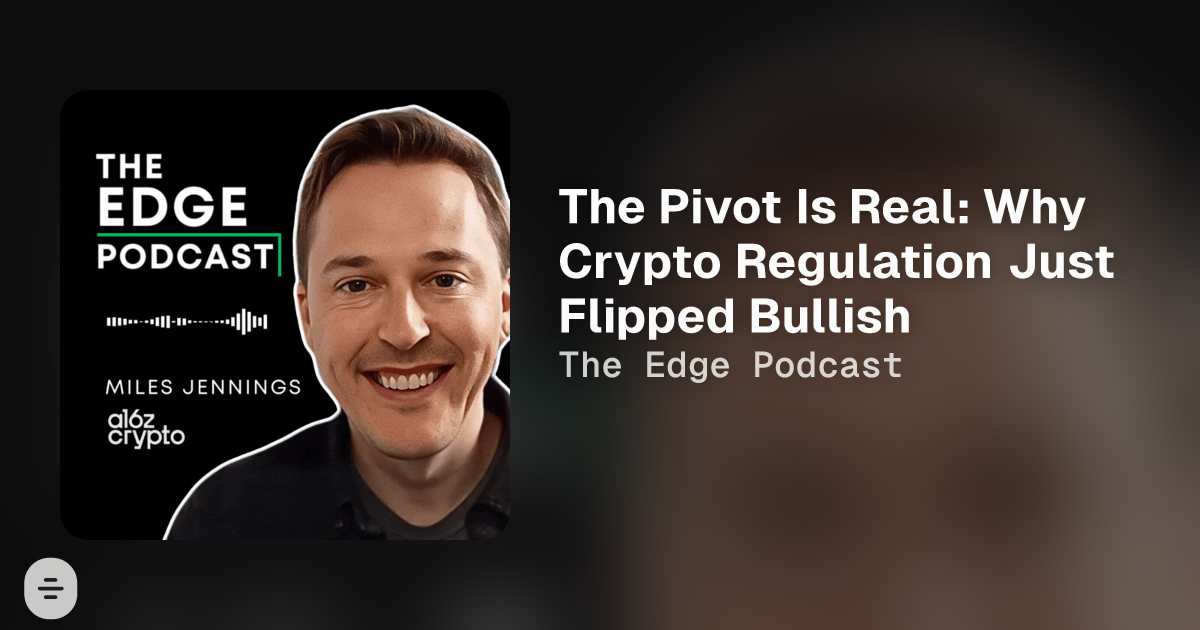 For years, U.S. crypto regulation has felt like a never-ending game of whack-a-mole. But according to a16z crypto’s Head of Policy, Miles Jennings, the tides are finally turning. In a new episode of The Edge Podcast, Miles explains how Washington’s stance on crypto is shifting, from antagonism to alignment, and why that matters now more than ever. We cover the implications of hopefully still passing The GENIUS Act, the promise of RWAs, support for yield-bearing stablecoins, and why institutions are starting to lean back in.