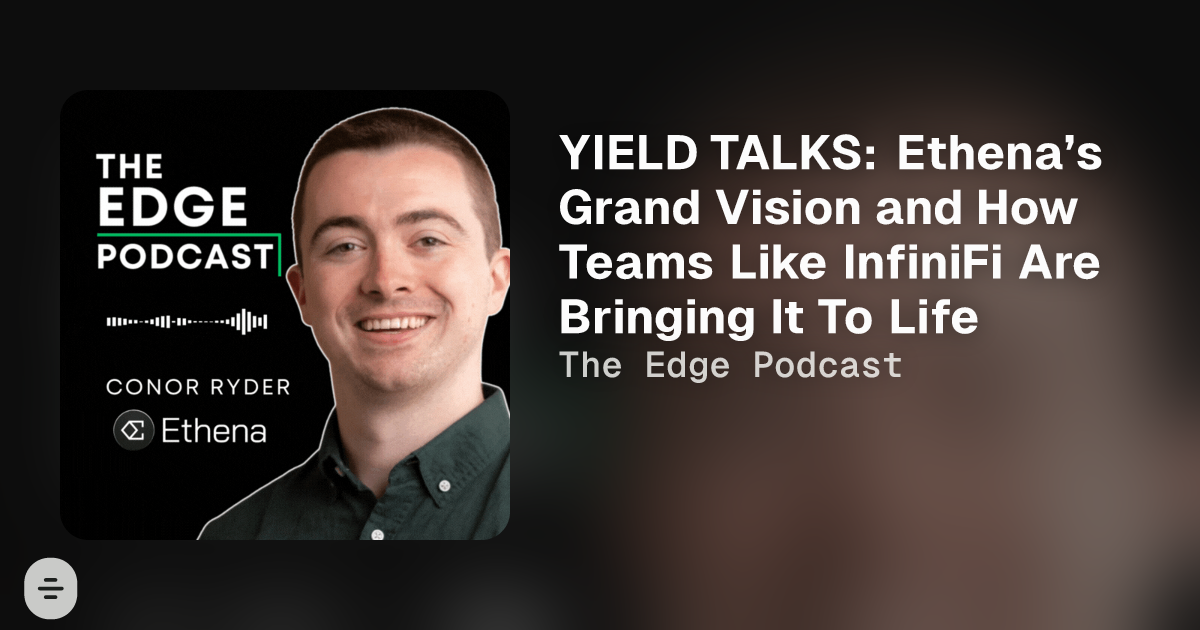 In a new session of Yield Talks on The Edge Podcast, we catch up with Ethena Labs Head of Research Conor Ryder and InfiniFi Labs Founder Rob Montgomery, on the latest news surrounding Ethena’s explosive growth, including how teams like InfiniFi are building better yield strategies powered by underlying USDe/sUSDe. Plus, we squeeze every last detail we can get out of Conor on Ethena’s upcoming L2 Converge launch and their newly announced ENA treasury vehicle, StablecoinX.