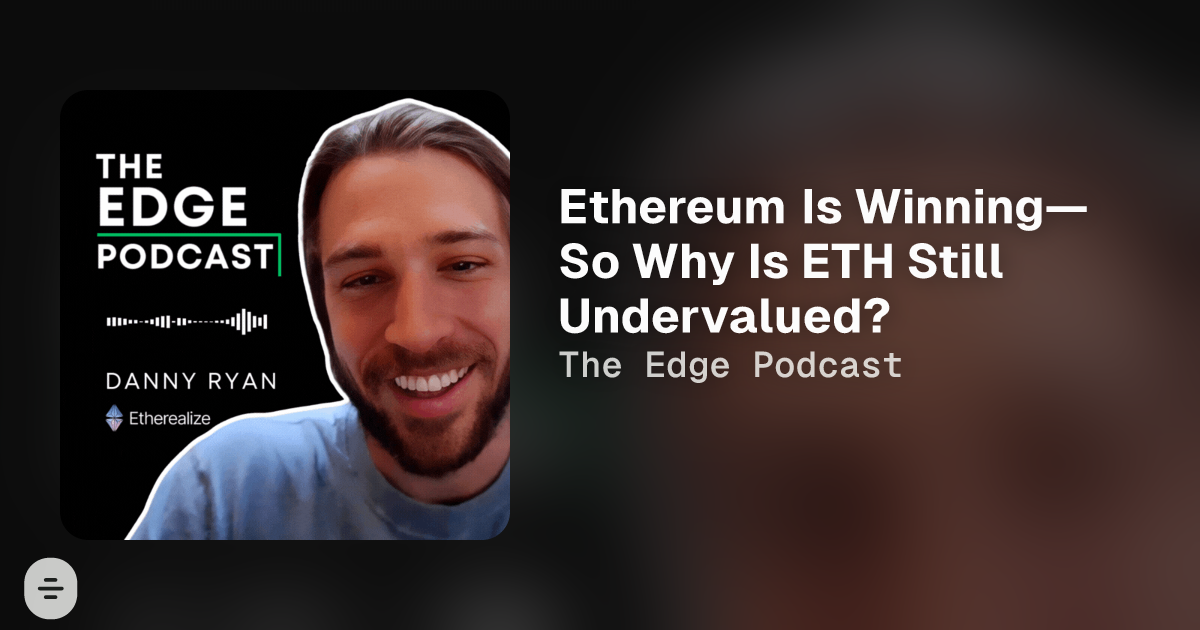 So why is ETH a punching bag for CT investors? For a new Edge Podcast, we invited the CoFounders of Etherealize, a newly launched team dedicated to marketing, business development, and product on behalf of Ethereum. Etherealize will aim to be the voice which speaks on behalf of Ethereum on Wall Street, in Washington DC, and with government leaders around the world.