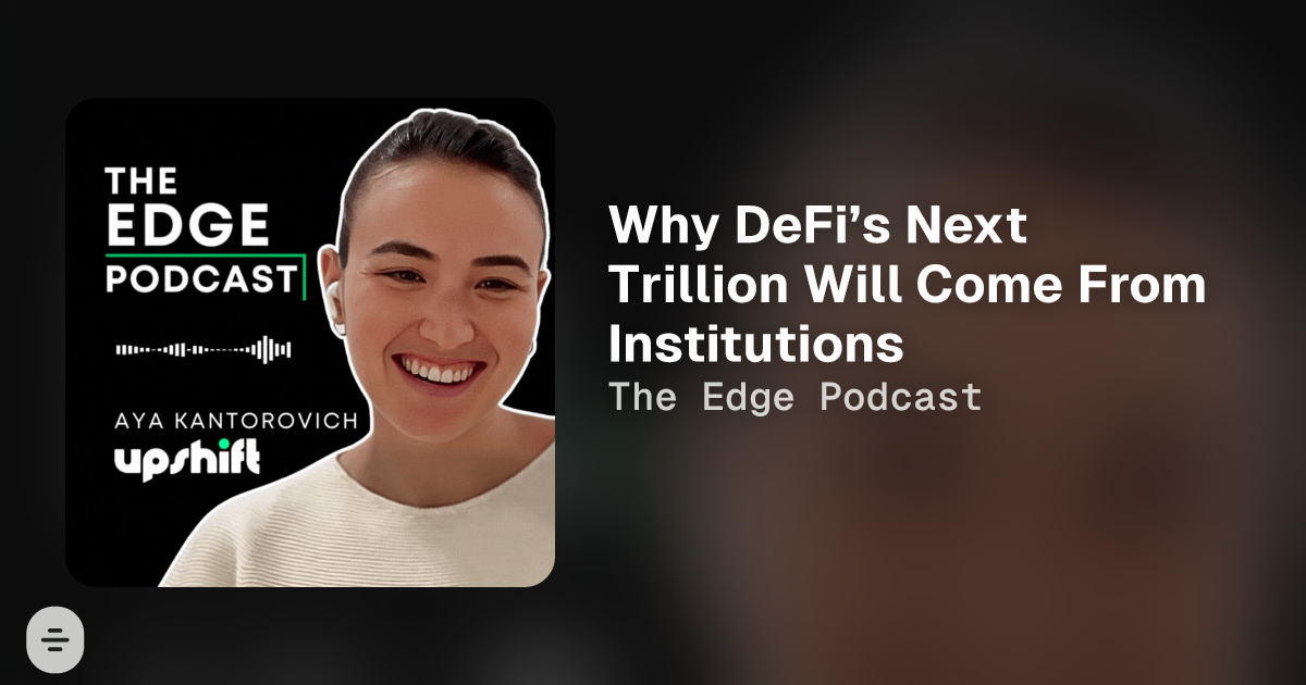 In this week’s episode of The Edge Podcast, we sit down with the Co-Founder and Co-CEO behind Upshift and August, Aya Kantorovich, to unpack the evolution of institutional DeFi, what needs to happen to onboard the next trillion dollars onchain, and how you can front-run the crowd by earning yield like the pros do.