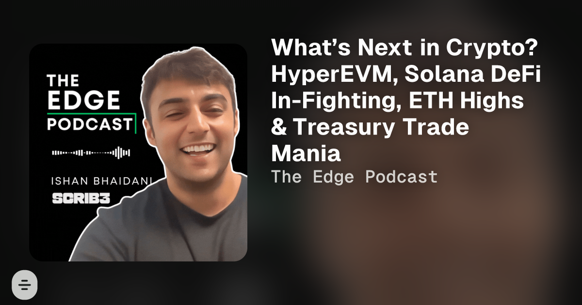 Knowing Ishan since 2022, we’ve always wanted to invite him onto The Edge Podcast to share some of his investment theses on a wide variety of topics including HyperEVM, Solana’s DeFi turf wars between Pump, Raydium, and Jupiter, crypto M&A opportunities, and why he’s both bullish and cautious about the newest crypto treasury company mania.