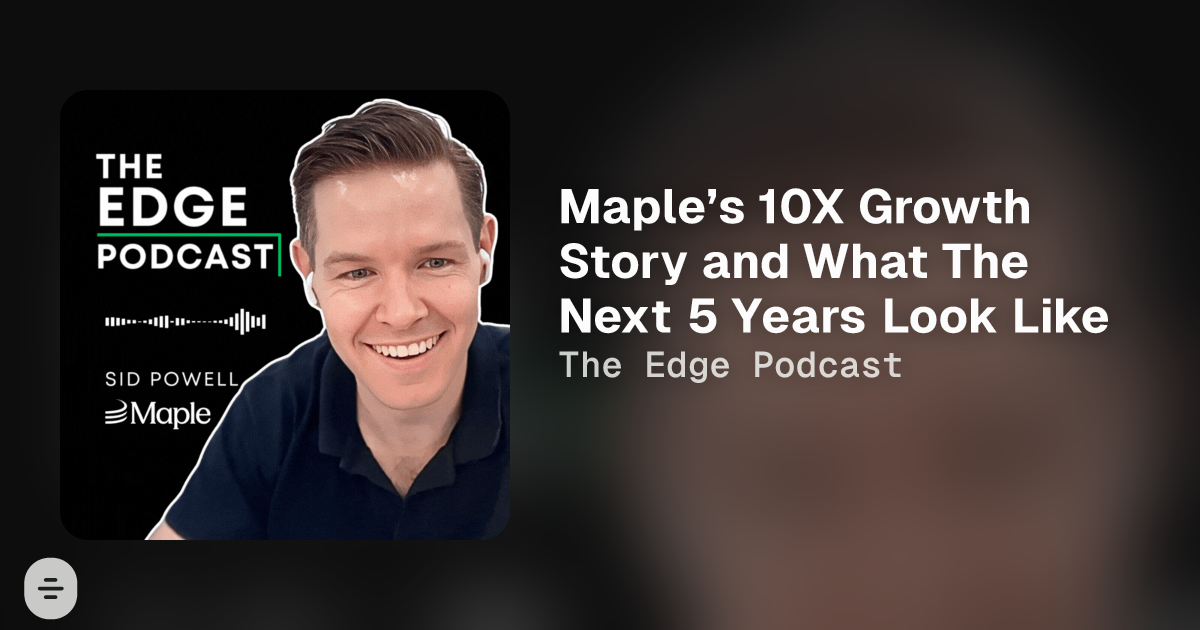 In this episode of The Edge Podcast, we get an inside look at how Maple plans to keep scaling institutional lending and borrowing, what tailwinds and trends Sid sees in favor of Maple’s continued growth, new details on a yield token called syrupBTC, and what the next 5 years look like for Maple.