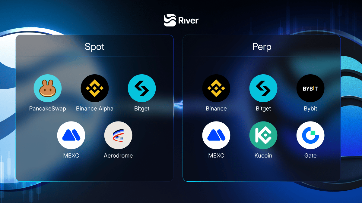 $RIVER Perp listed on Binance, Bybit, Bitget, KuCoin, and Gate — covering top CEX.