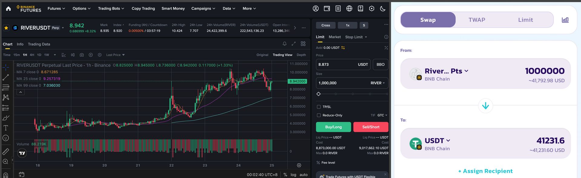 Since TGE, River Pts have surged 40× on DEX, as the market prices in timing and strategy. Some users convert early for liquidity; others wait for higher ratios. Together, they form a living market that adjusts continuously, not a one-time unlock.