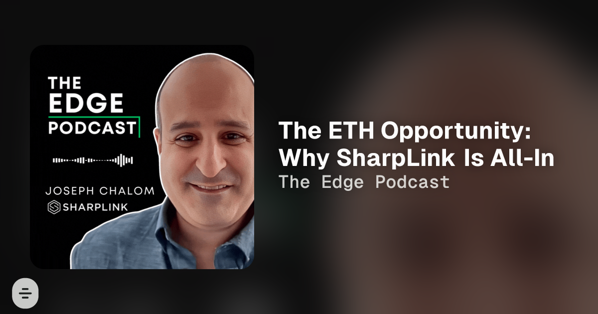 In a new episode of The Edge Podcast, we sit down with Joseph Chalom, co-CEO of SharpLink, and Jason Linehan of ConsenSys to explore why the time to go long ETH might be right now. From SharpLink’s 100% staking strategy to its edge over traditional ETFs, this conversation is a masterclass in how institutional-grade players are positioning for the next wave of Ethereum adoption. Whether you’re an ETH holder, DeFi enthusiast, or simply curious about where the market is headed, this is one you don’t want to miss.