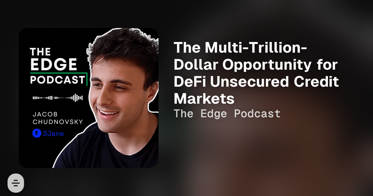 In a new episode of The Edge Podcast, we explore how 3Jane is pioneering the holy grail of DeFi that is unsecured credit and loans. 3Jane Founder Jacob Chudnovsky joins us to explain how 3Jane built a new protocol on Ethereum to finally unlock a multi-trillion-dollar credit-based economy in DeFi.