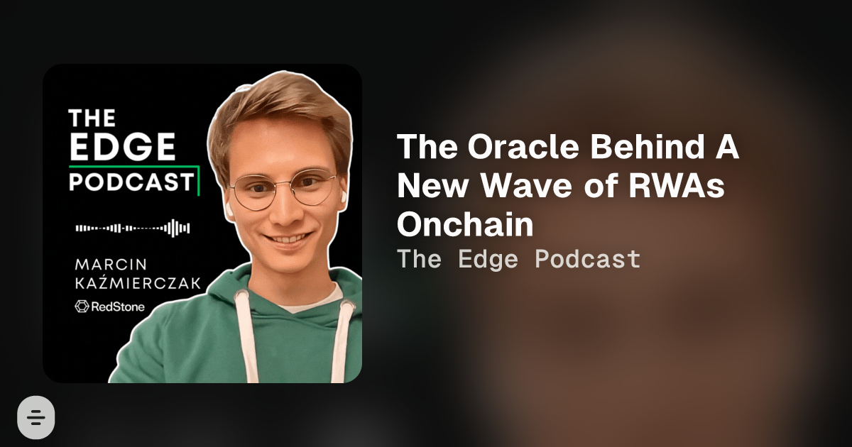 This week on The Edge Podcast, we’re joined by RedStone CoFounders Jakub Wojciechowski and Marcin Kaźmierczak to explore how their oracle network is becoming foundational infrastructure for the next era of RWAs onchain. From powering stablecoins and LRTs to supporting Apollo’s tokenized private credit through Securitize, RedStone is playing a key role in helping RWA protocols scale with security and composability.