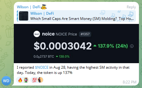 I just wanted to share another example of how inPlanB has been early to some alpha in our private telegram chat. He was all over NOICE on August 28th and even called it out: