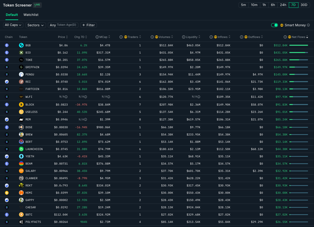 According to Nansen, Smart Money refers to the most successful onchain traders.