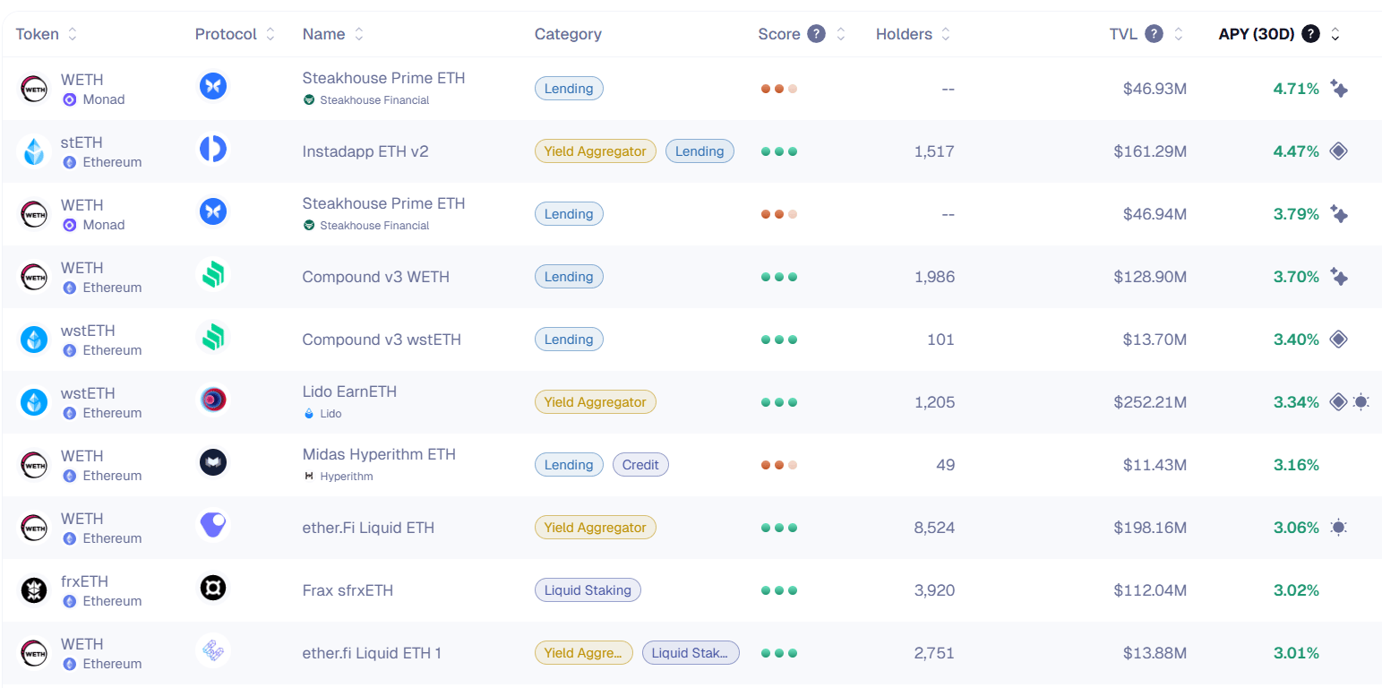 Here’s the top yielding ETH vaults (real yields) for the past 30 days: