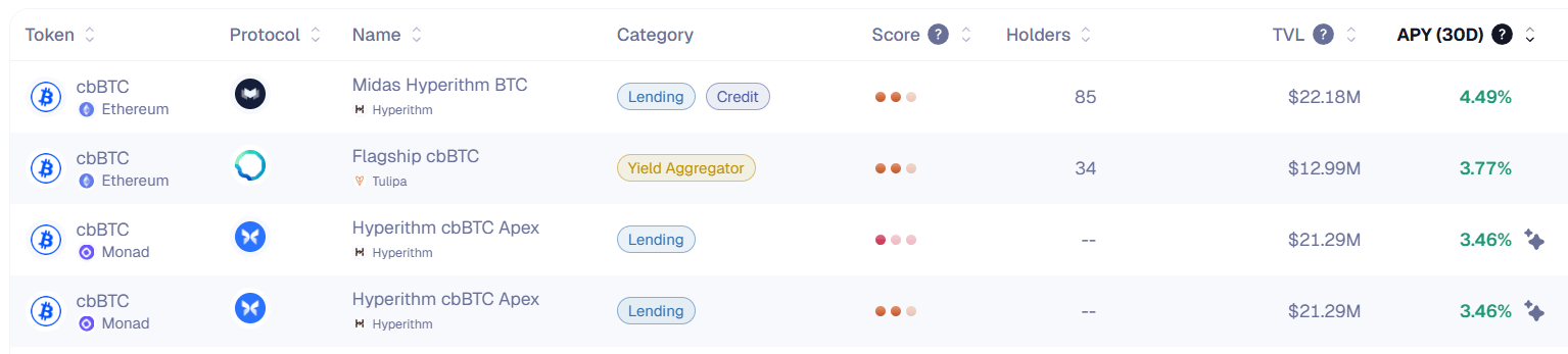Here’s the top yielding BTC vaults (real yields) for the past 30 days:
