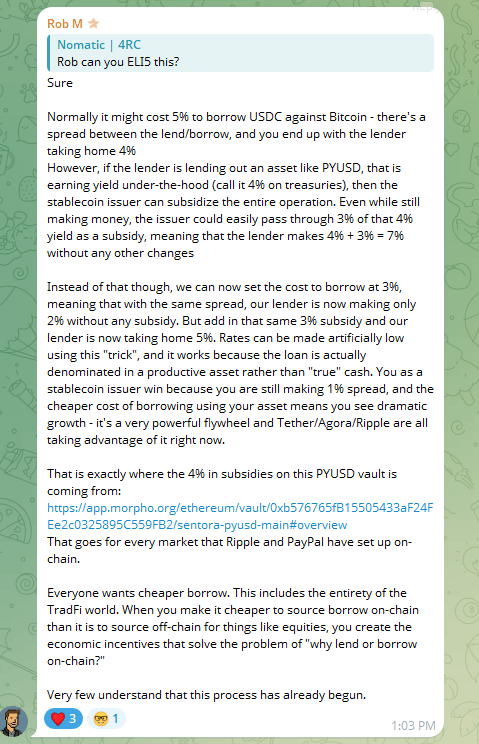 I was pretty sure I understood what he was talking about, but I pinged him in our telegram group and got him to ELI5 it for me. Here’s what he said;