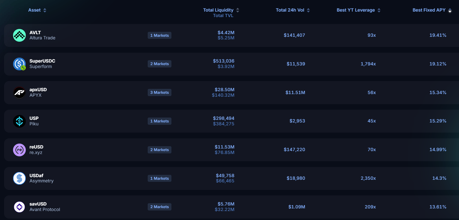 Taking a look at the front page of Stablecoin yields and RWA yields this week on Pendle:
