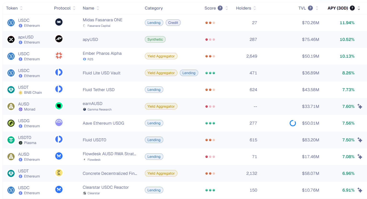 Here’s the top yielding stablecoin vaults (real yields) for the past 30 days: