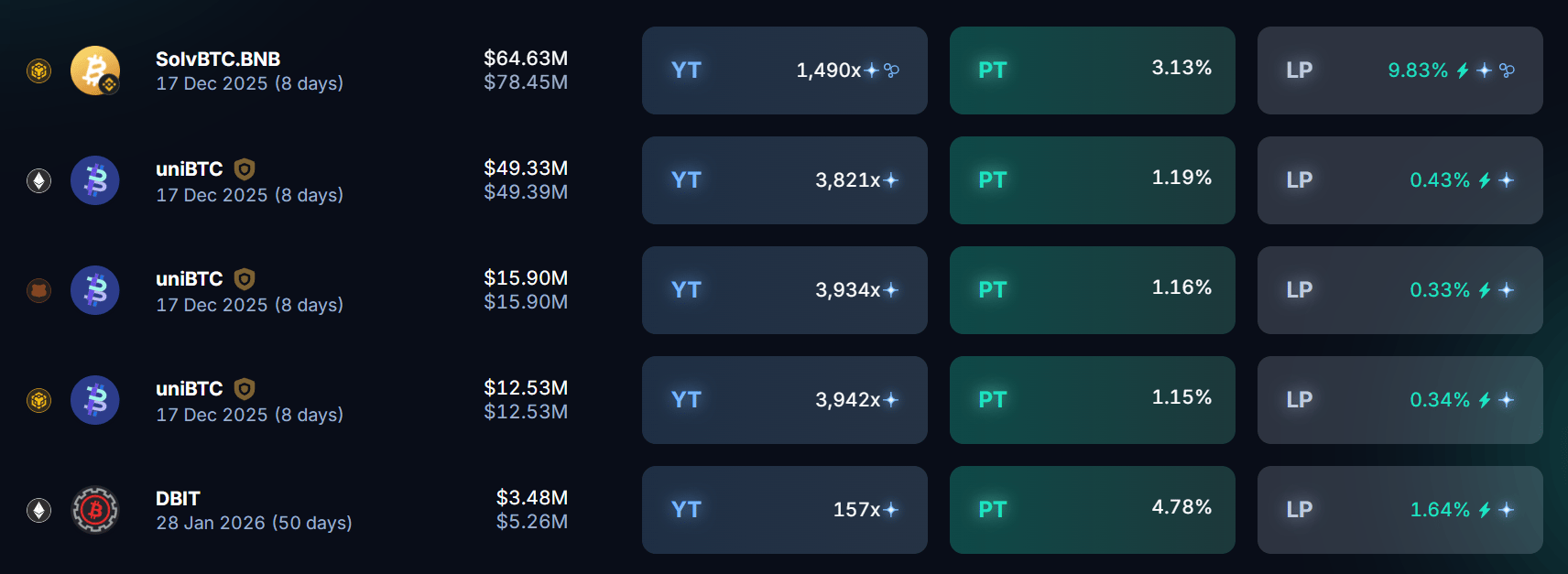 Here’s what the front page of yield on Pendle looks like this week: