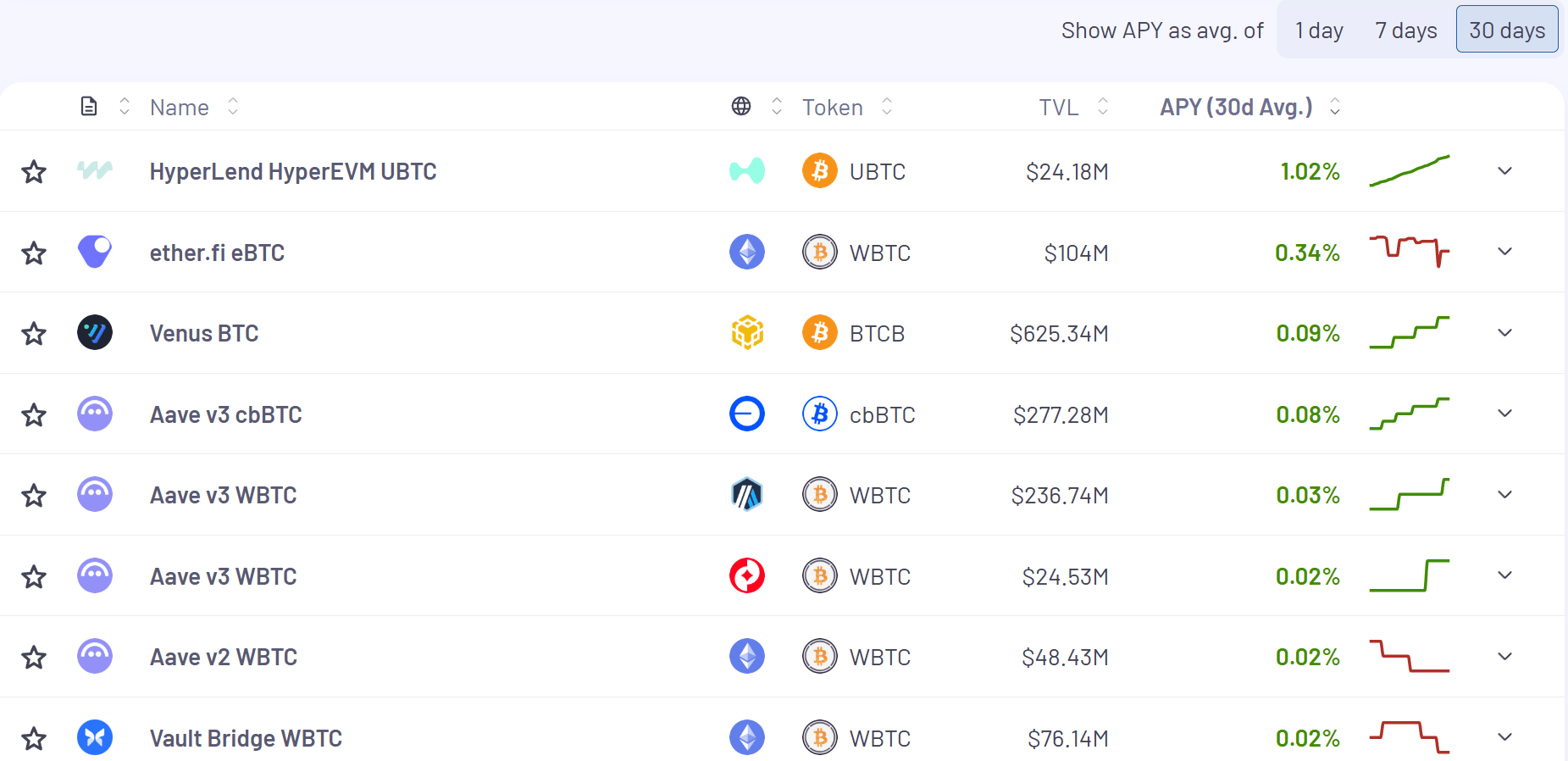 Here’s the top yielding BTC vaults (real yields) for the past 30 days: