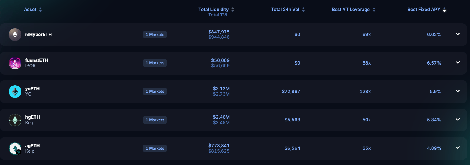 Taking a look at the front page of DeFi yields on Pendle: