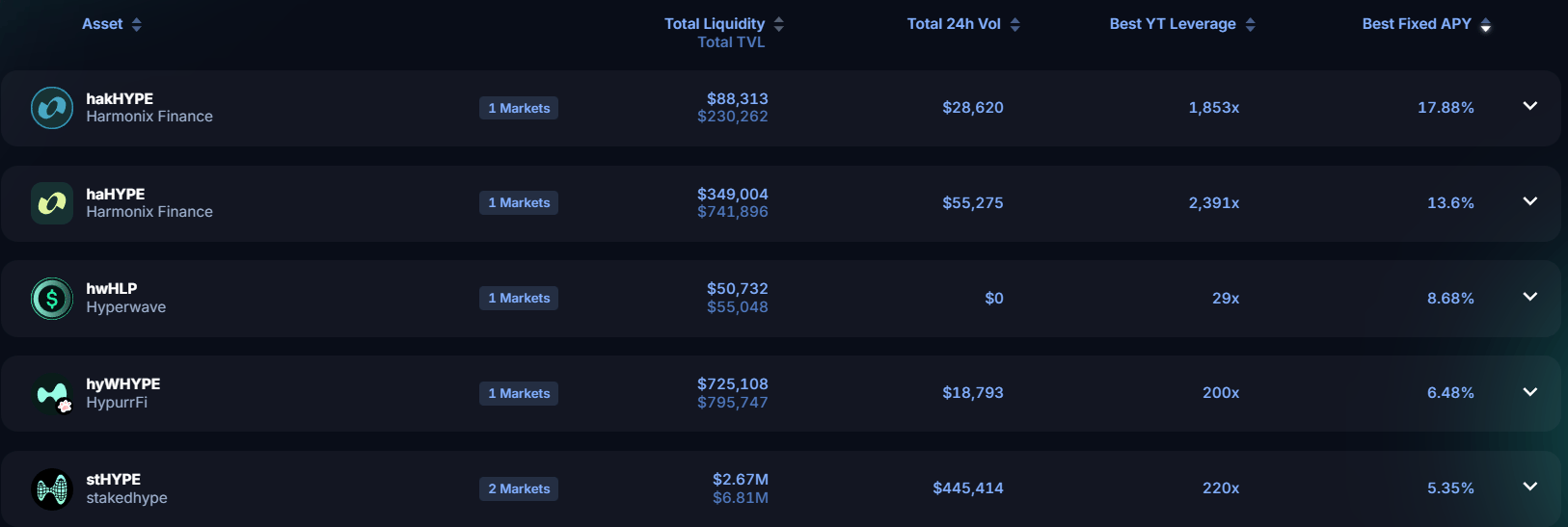 Taking a look at the front page of DeFi yields on Pendle: