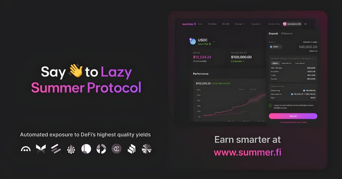 Earn high-quality DeFi yield on assets like ETH, USDC and USDT automatically - with Summer.fi