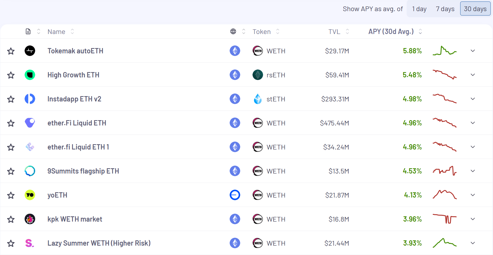 Here’s the top yielding ETH vaults (real yields) for the past 30 days: