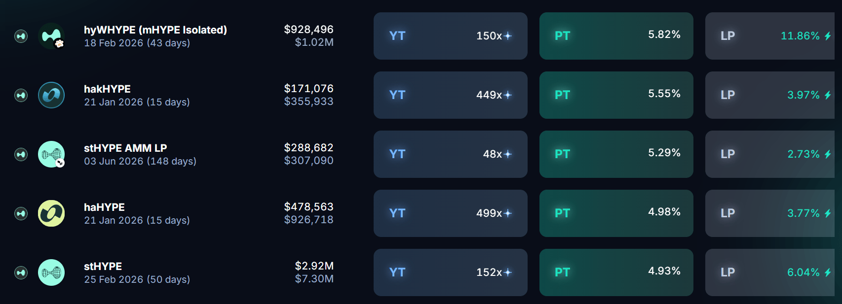 Taking a look at the front page of DeFi yields on Pendle: