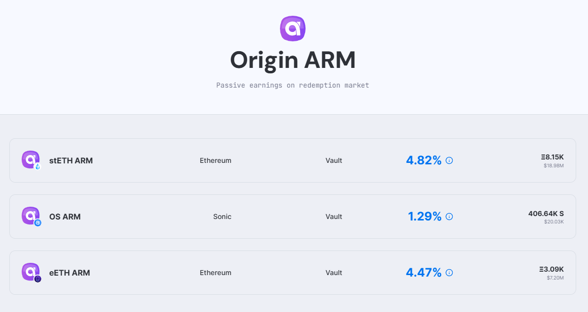 One I would add to DeFi Dad’s list is Origin’s ETH ARM products. A member of our Inner Edge Telegram put it on my radar:
