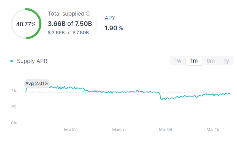 USDC 30 day benchmark rate on Aave: 2.01% (down from 2.12% last week)
