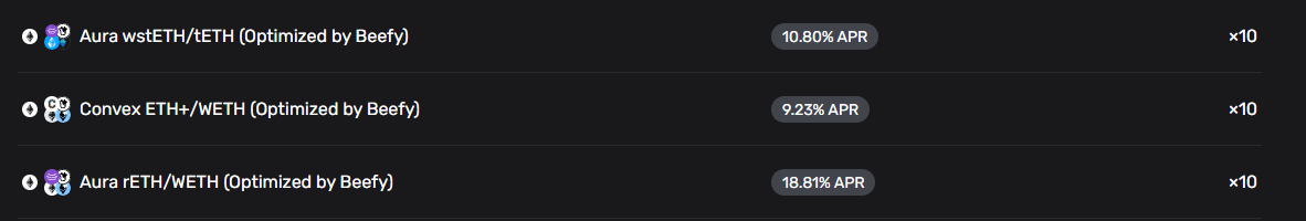 Here’s the top yielding ETH vaults (real yields) for the past 30 days:
