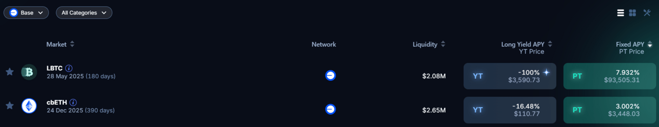 Here’s the first two pools live as of today on Pendle’s Base deployment: