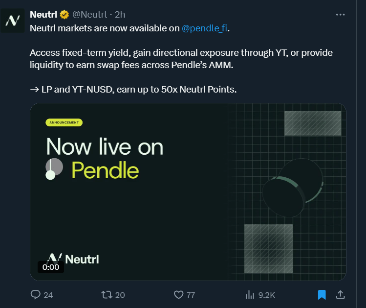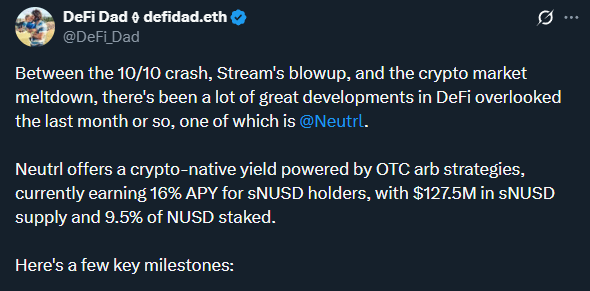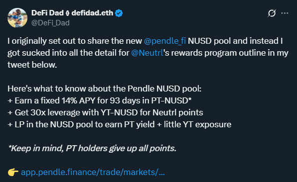 If you want to learn more about Neutrl, we chatted with them on our podcast and DeFi Dad has been writing a bit about them this week: