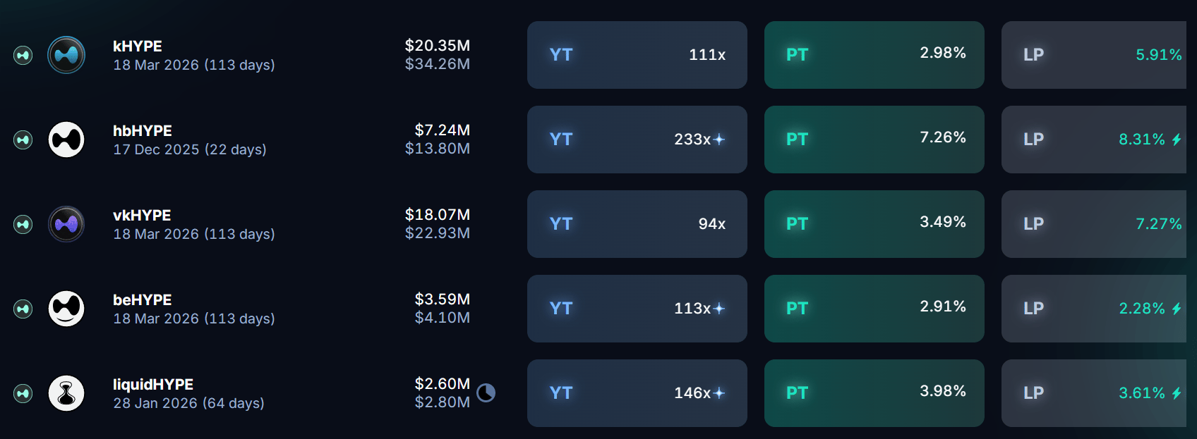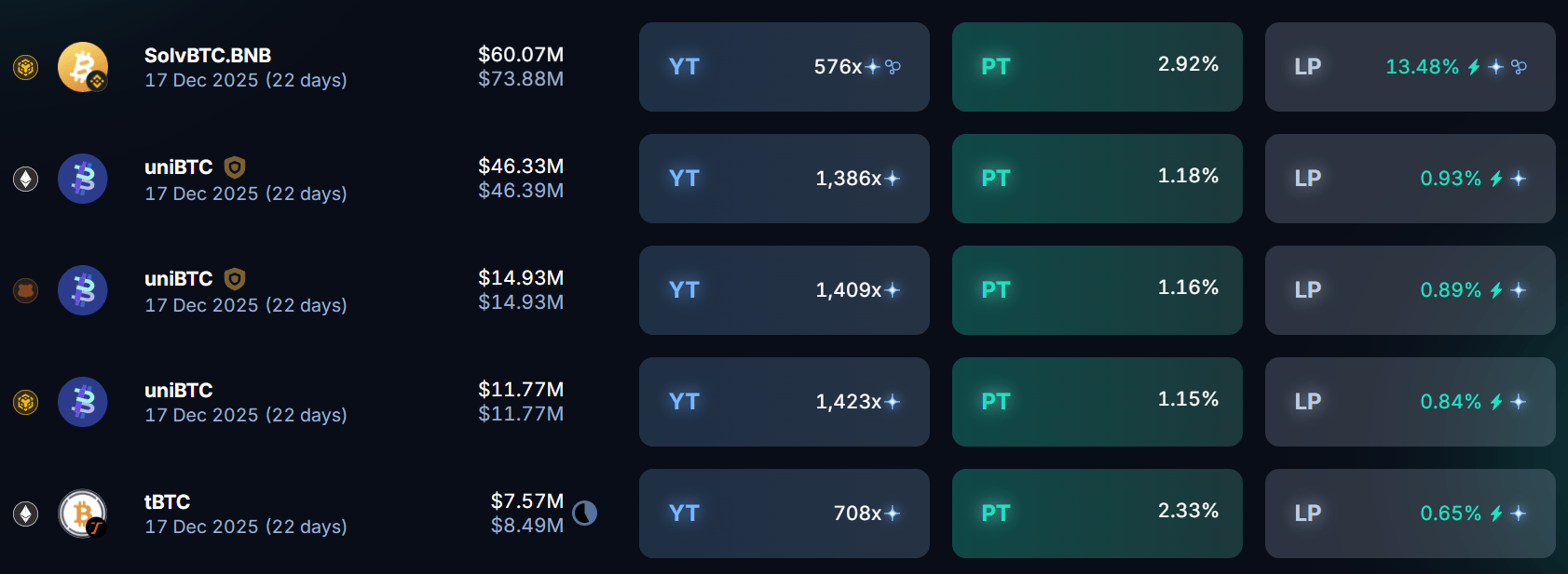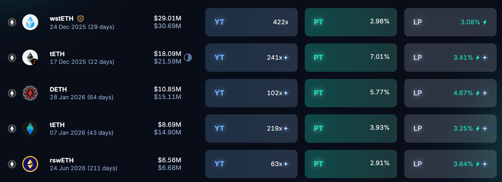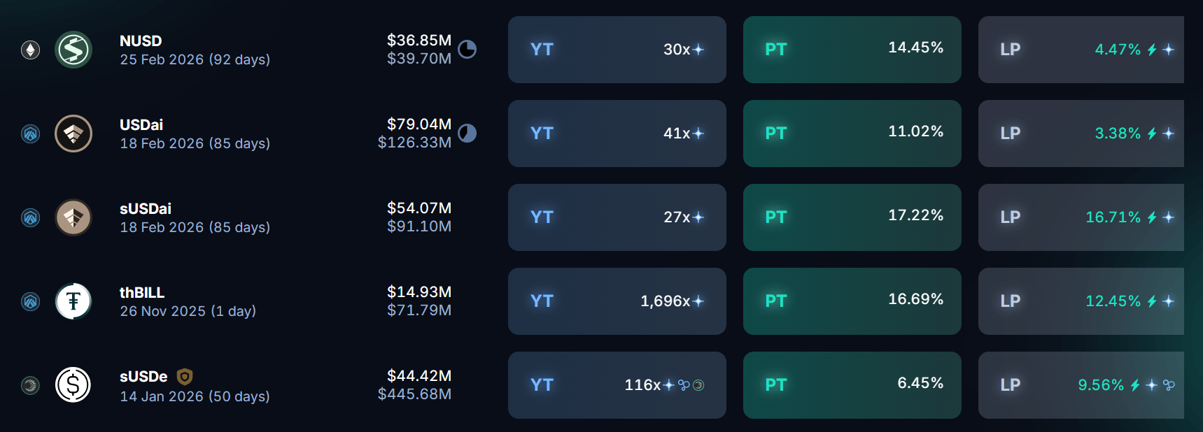 Here’s what the front page of yield on Pendle looks like this week: