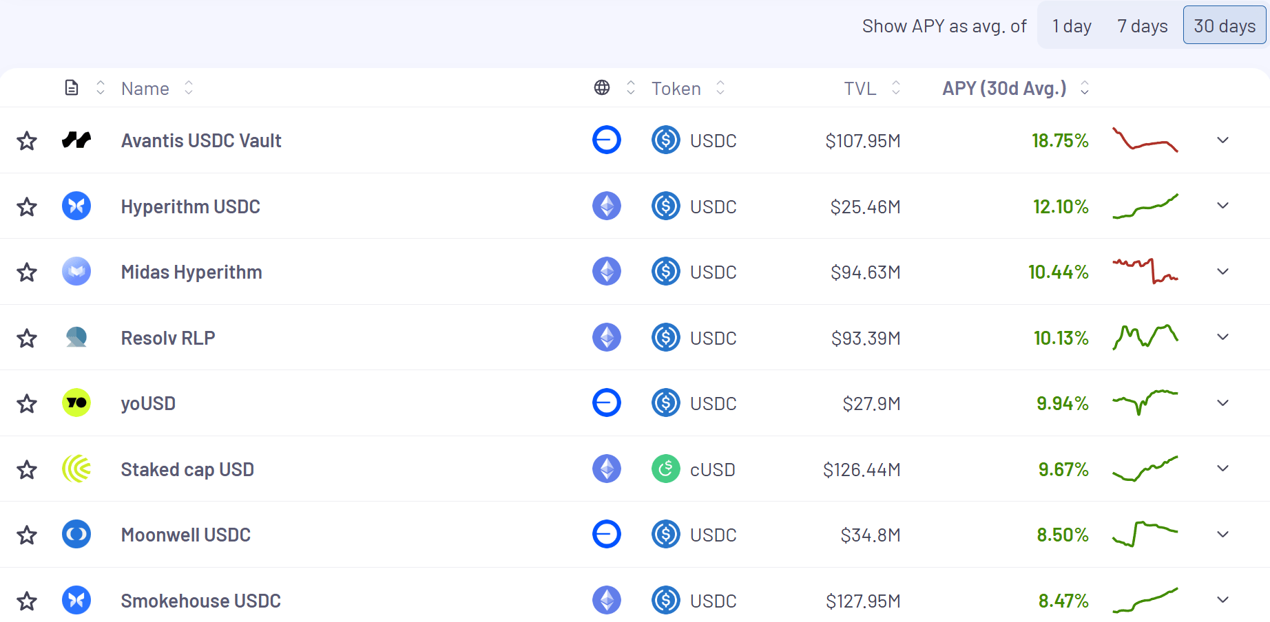 Here’s the top yielding stablecoin vaults (real yields) for the past 30 days according to Vaults.fyi: