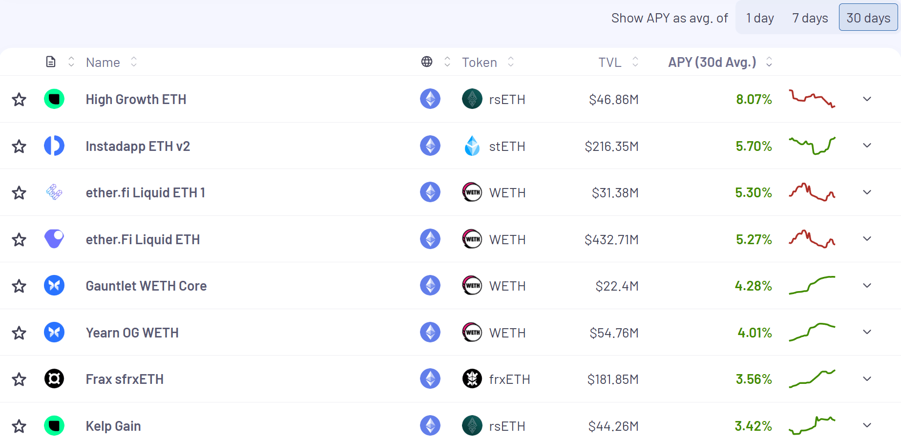 Here’s the top yielding ETH vaults (real yields) for the past 30 days according to Vaults.fyi:
