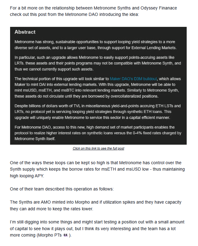 We’ve written about Odyssey a few times as we’ve known a few members of their core team for many years and they have some of the best looping yields in DeFi.