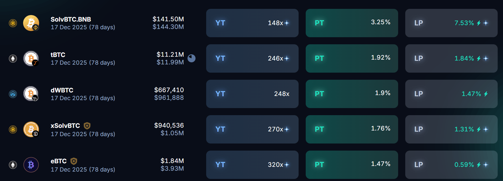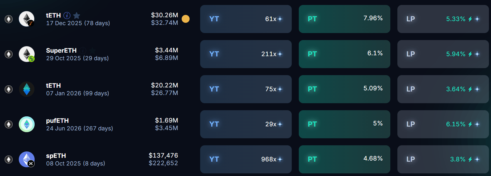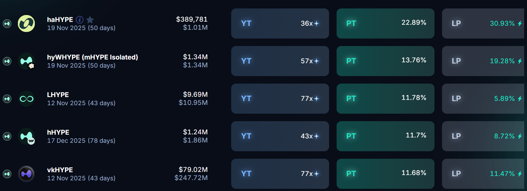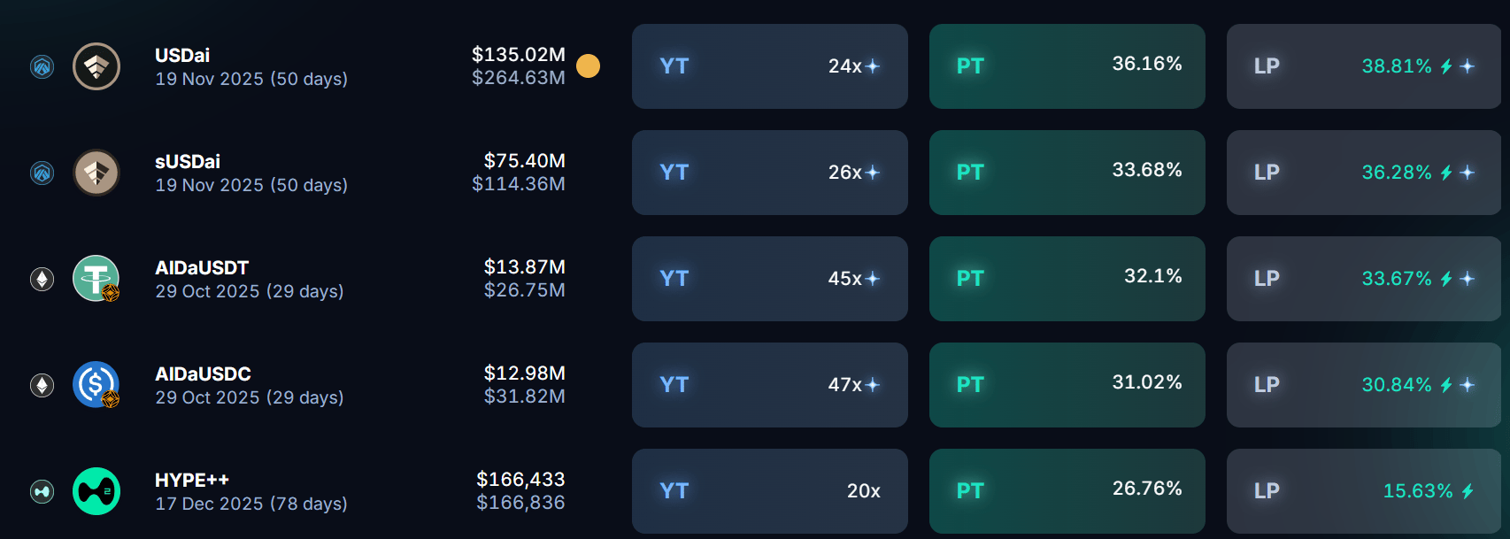 Here’s what the top yield markets on Pendle look like across Stables, BTC, ETH and HYPE (keep an eye on the maturity dates, pools with only a few days left typically show elevated yields):