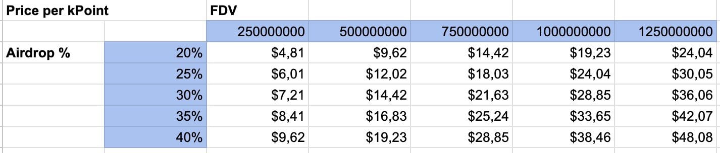 Hyperliquid Eco made some assumptions here on what final $/pt might end up at: