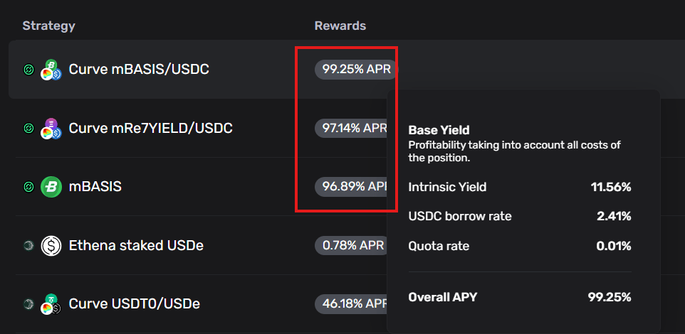Gearbox has some nice loops with incredibly low borrow rates at the moment. These particular strategies are centered around Midas products and generating between 96.89% - 99.25% APR: