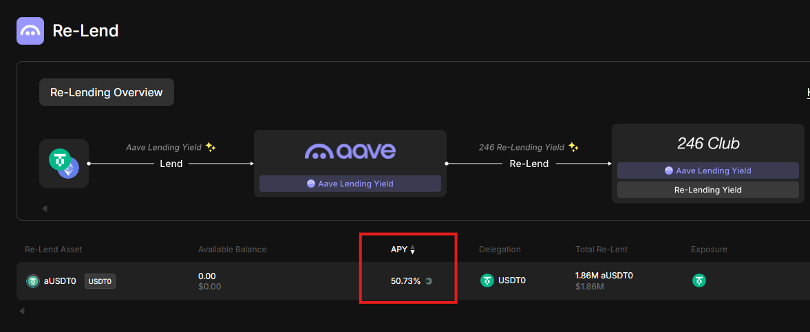 246 is built as a powerful extension of Aave. Their aUSDT0 re-lend yield is consistently fluctuating between 30% - 60% APY.