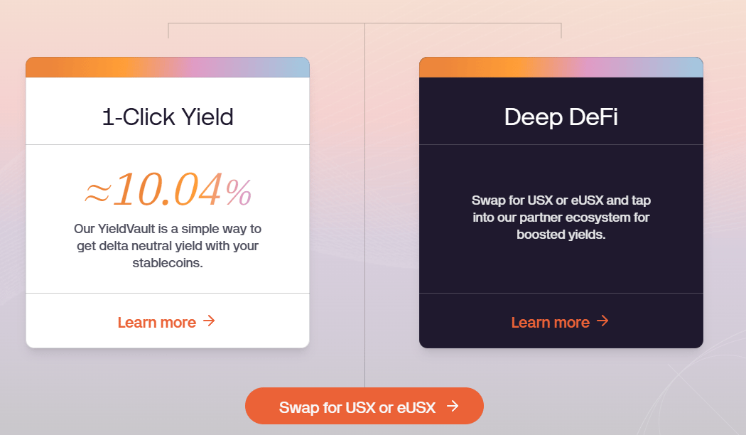 As a user you’re faced with the option of clipping solid delta neutral yield, or further utilizing your USX throughout the Solana DeFi ecosystem.